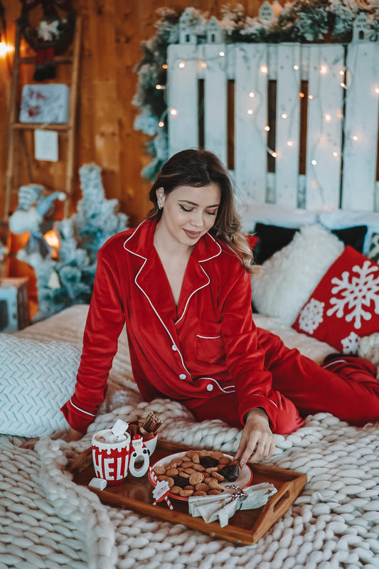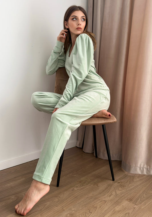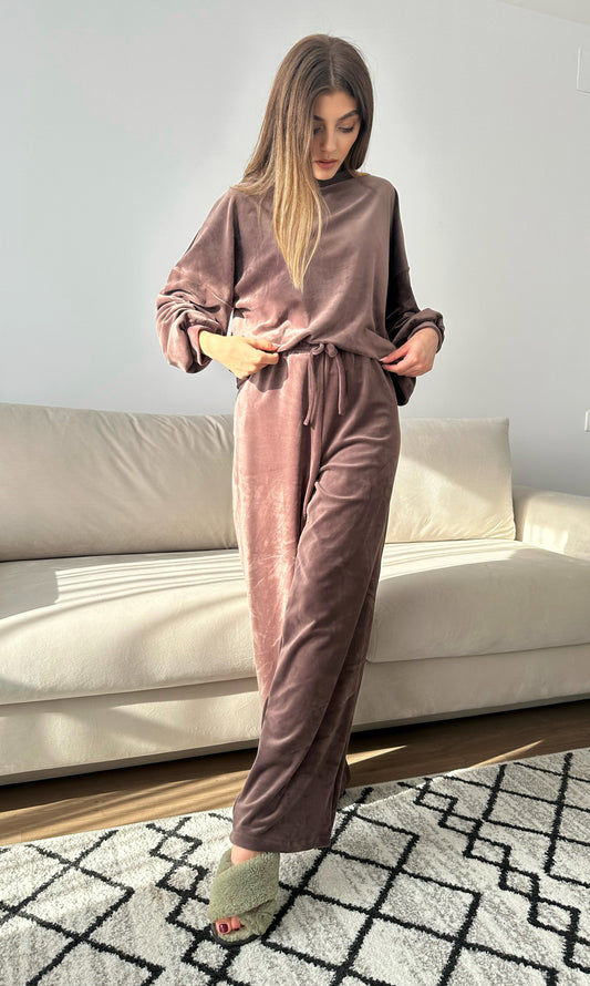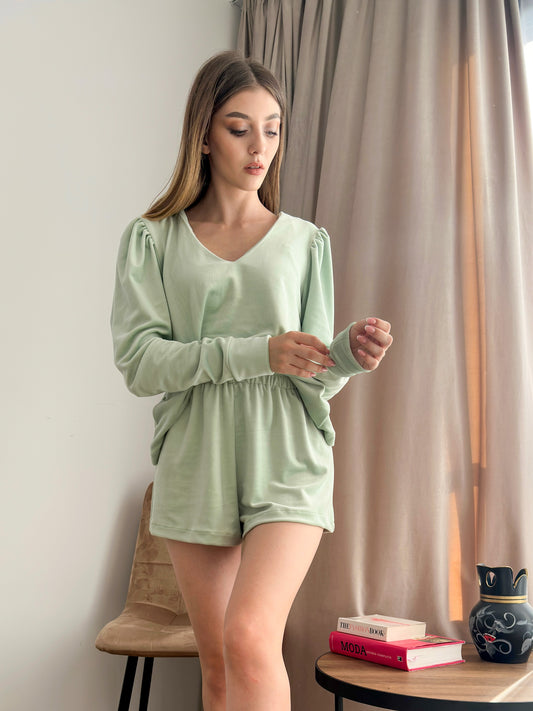 Pijama scurtă cu bluză lungă din catifea supersoft Astrid