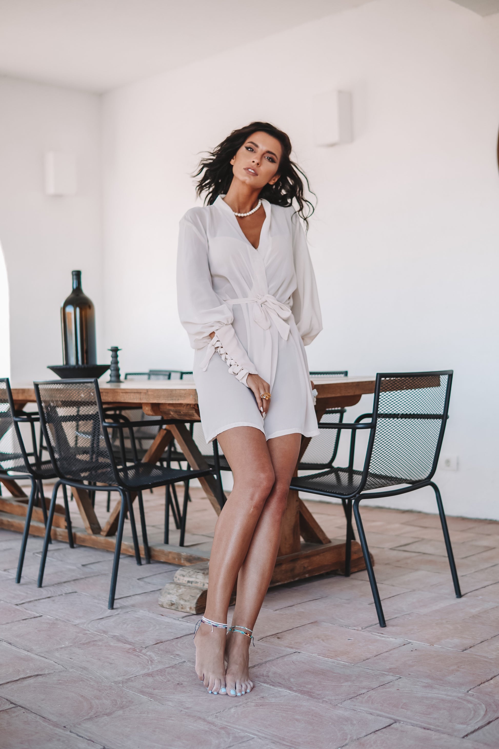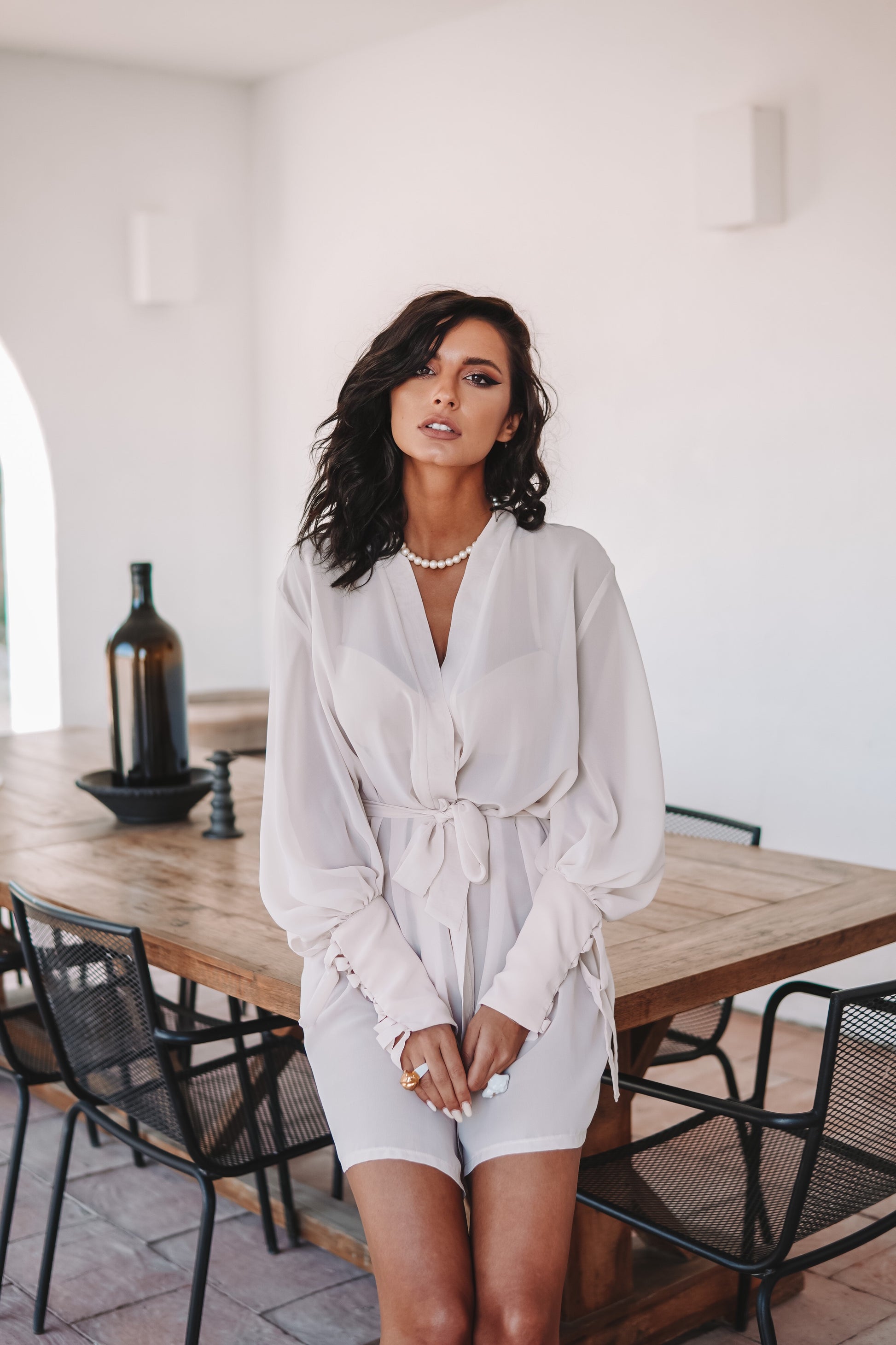Halatul are o croială lejeră care îmbracă corpul într-un mod plăcut. Acesta se strânge pe talie cu un cordon confecționat din aceeași țesătură. Manșetele oferă un aspect extraordinar.