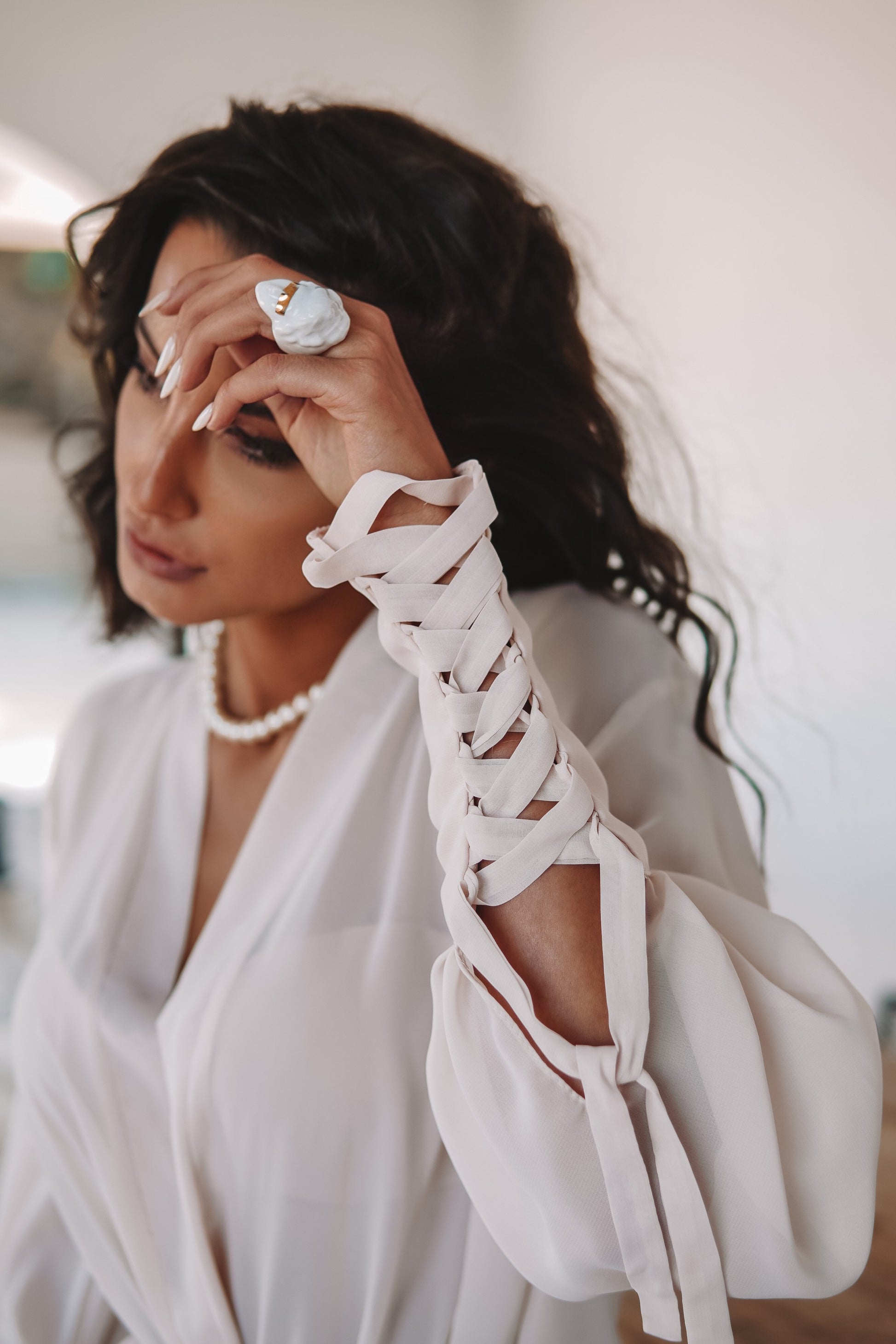 - Halatul este confecționat dintr-un voal moale și plăcut atingerii;